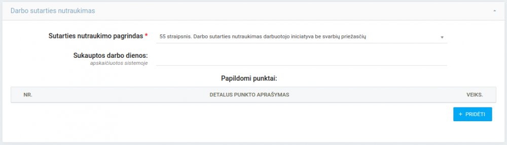 Atitinkamai koks darbo sutarties tipas pasirinktas sekantis blokas gali skirtis: