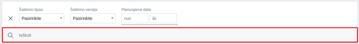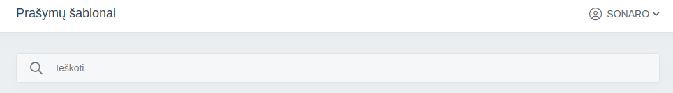 Norint surasti atitinkamą prašymų šabloną galima naudoti Paieškos laukelį, įvedant tikslią ar dalinai žinomą informaciją.