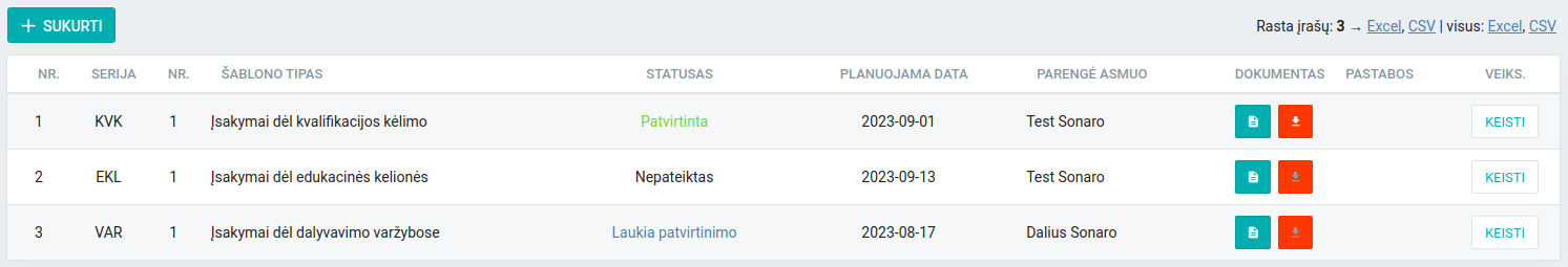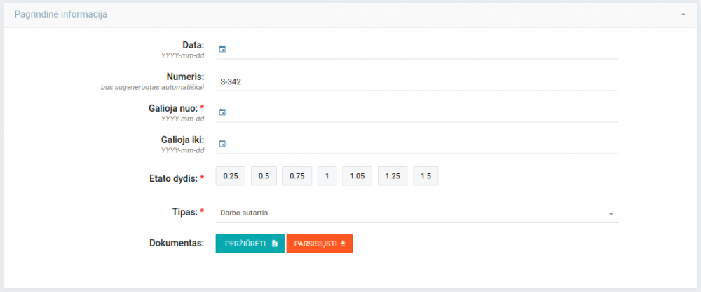 *Išdavimo dokumentai sugeneruojami automatiškai