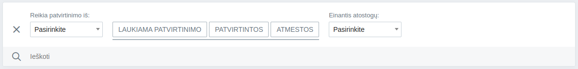 Laukiama patvirtinimo - rodomi atostogų prašymai, laukiantys patvirtinimo;