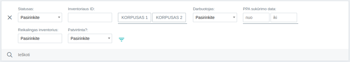 - PPA sukūrimo data - pasirenkamos datos NUO IKI kada norima matyti išduotą inventorių;
