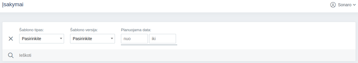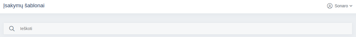 Norint surasti atitinkamą įsakymų šabloną galima naudoti Paieškos laukelį, įvedant tikslią ar dalinai žinomą informaciją.