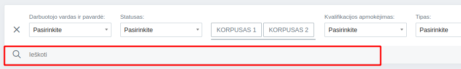 Naudojant paieškos laukelį, įvedant tikslią ar dalinai žinomą informaciją:![]()