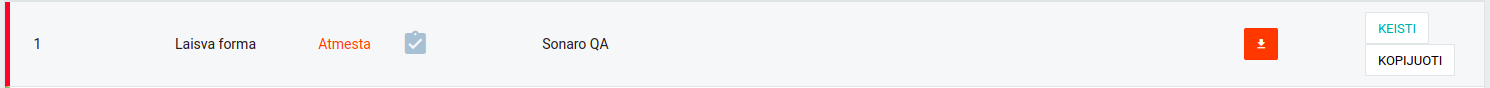 Kai prašymas būna atmetamas arba patvirtinamas, prašymą galima peržiūrėti/atsisiųsti ne tik iš sąrašo, tačiau ir iš vidinės prašymo kortelės (Prašymo formą prieš tai turi būti išsaugota.):