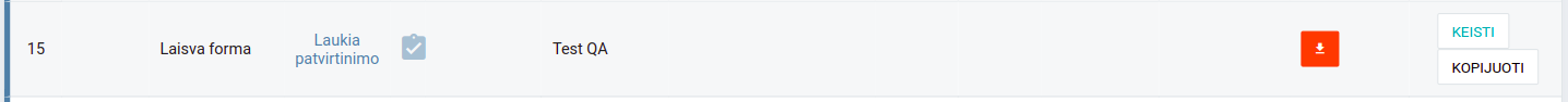 Pasirinkus tvirtinančius darbuotojus ir supildžius visus kitus privalomus laukus galima pradėti tvirtinimo procesą spaudžiant mygtuką