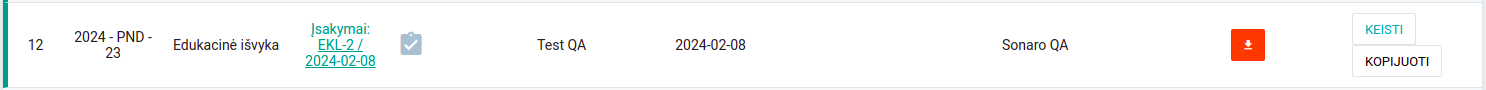 Įsakymai modulyje yra matomi ir kuriami įsakymai, kuriuos atsakingi asmenys galėtų peržiūrėti bei pasirašyti. Įsakymai gali būti sugeneruoti iš prašymų arba sukurti rankiniu būdu Įsakymai modulyje.