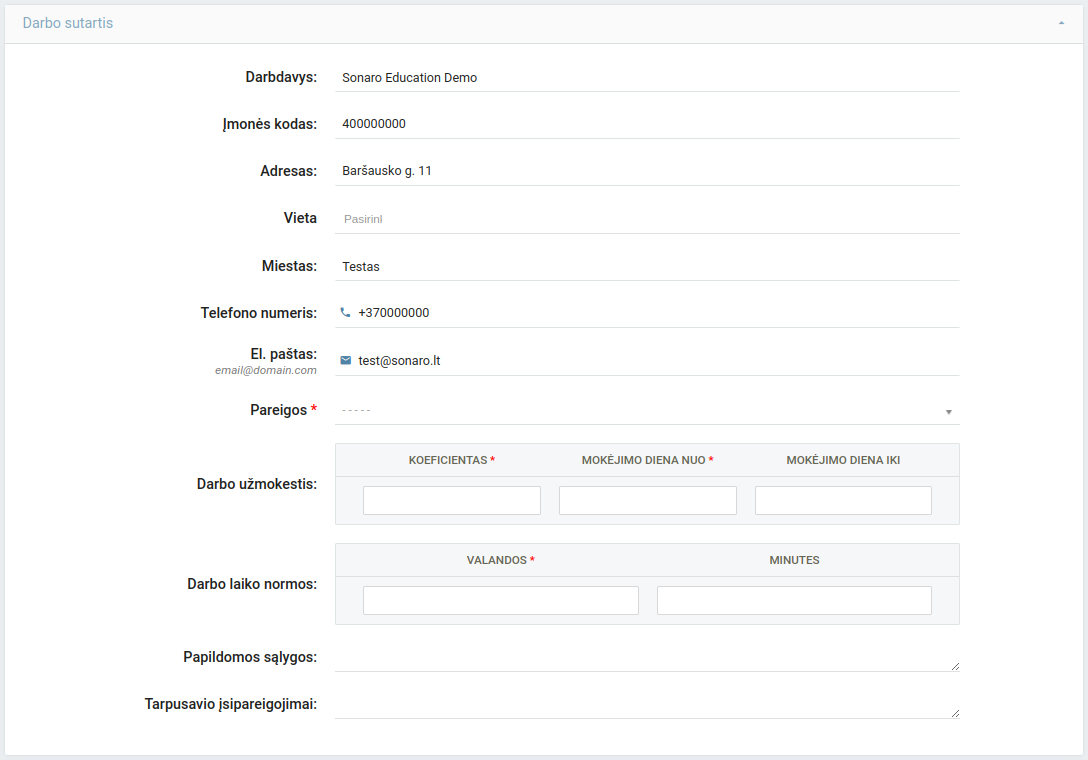 * Žvaigždute pažymėtos vietos yra privalomos įvesti
