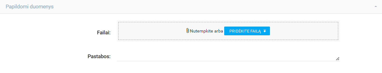 Failai - galima pridėti su prašymu susijusi dokumentą (galima pridėti daugiau nei vieną);